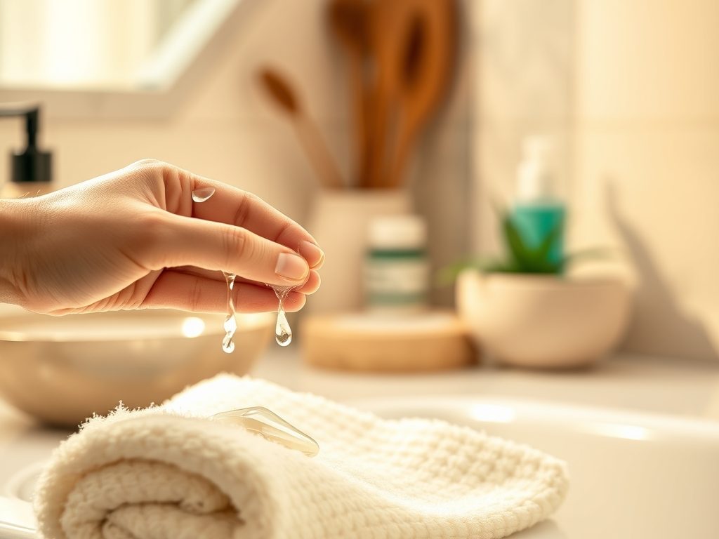 Techniki osuszania powinny zakładać, że ręcznik należy przykładać do twarzy, aby wchłonąć nadmiar wody, zamiast pocierać. Używaj oddzielnego ręcznika wyłącznie do twarzy, który powinien być prany w wysokiej temperaturze, aby zachować higienę.